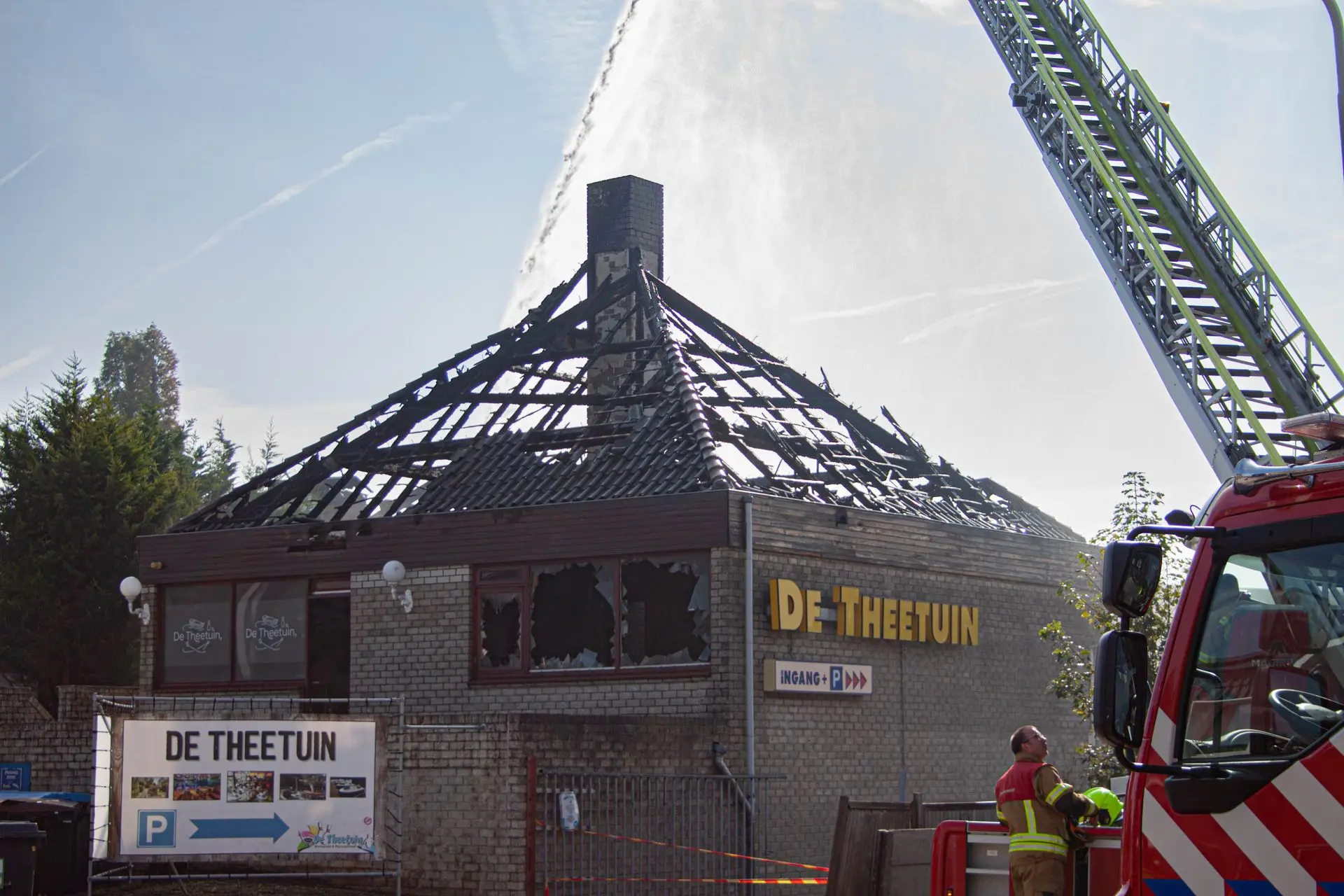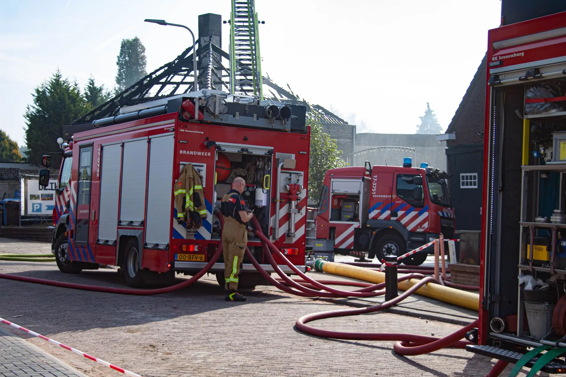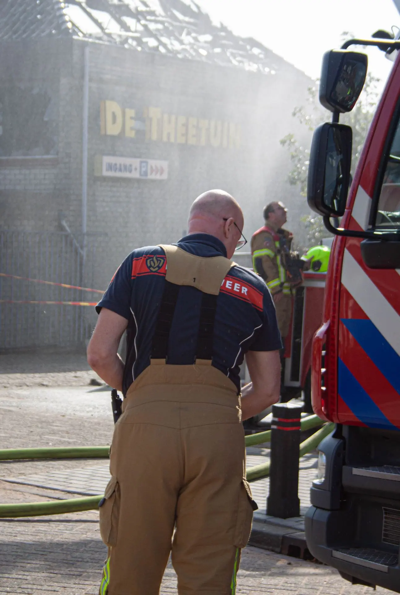 Vanmorgen rond 08:30 uur heb ik foto’s gemaakt tijdens het nablussen van de GRIP 1-brand bij de Theetuin in Ridderkerk. Op de beelden is te zien hoe de brandweer nog bezig was met de afrondende werkzaamheden na de brand.